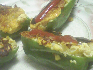 今日は肉詰めピーマンです。