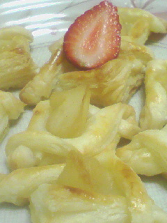 2.パイ生地にカスタード、アップルフィリングを乗せる。パイデザンはセンスの見せ所!お好みでどぞ。