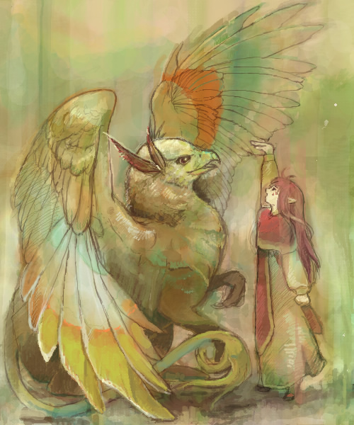 2・25日にきゅーブログに投稿したグリフォンとモアの絵です。