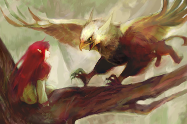 絵板絵としては最高記録の18時間をかけました。とりあえずグリフォンが描きたくて描いた絵。